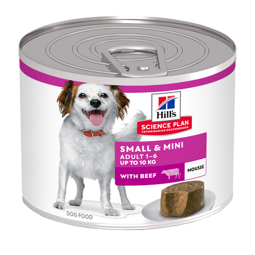 Мус для дорослих собак малих і мініатюрних порід Hill’s <span class='nowrap'>SCIENCE PLAN</span> з яловичиною — це повнораціонне харчування для дорослих собак малих порід віком від 1 до 6 років. Корм із м’якою мусовою текстурою, а також оптимальною комбінацією білків, жирів і вуглеводів, забезпечує улюбленців збалансованим щодо віку рівнем енергії.